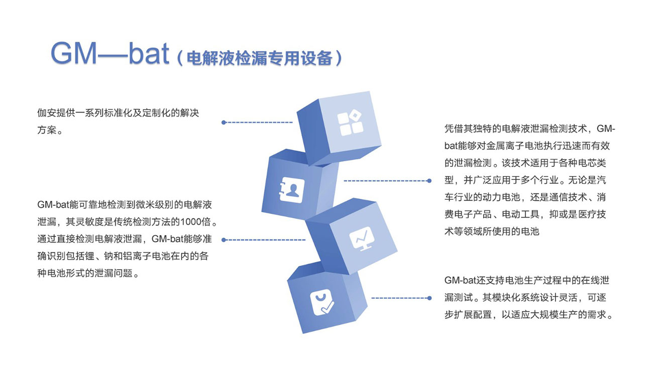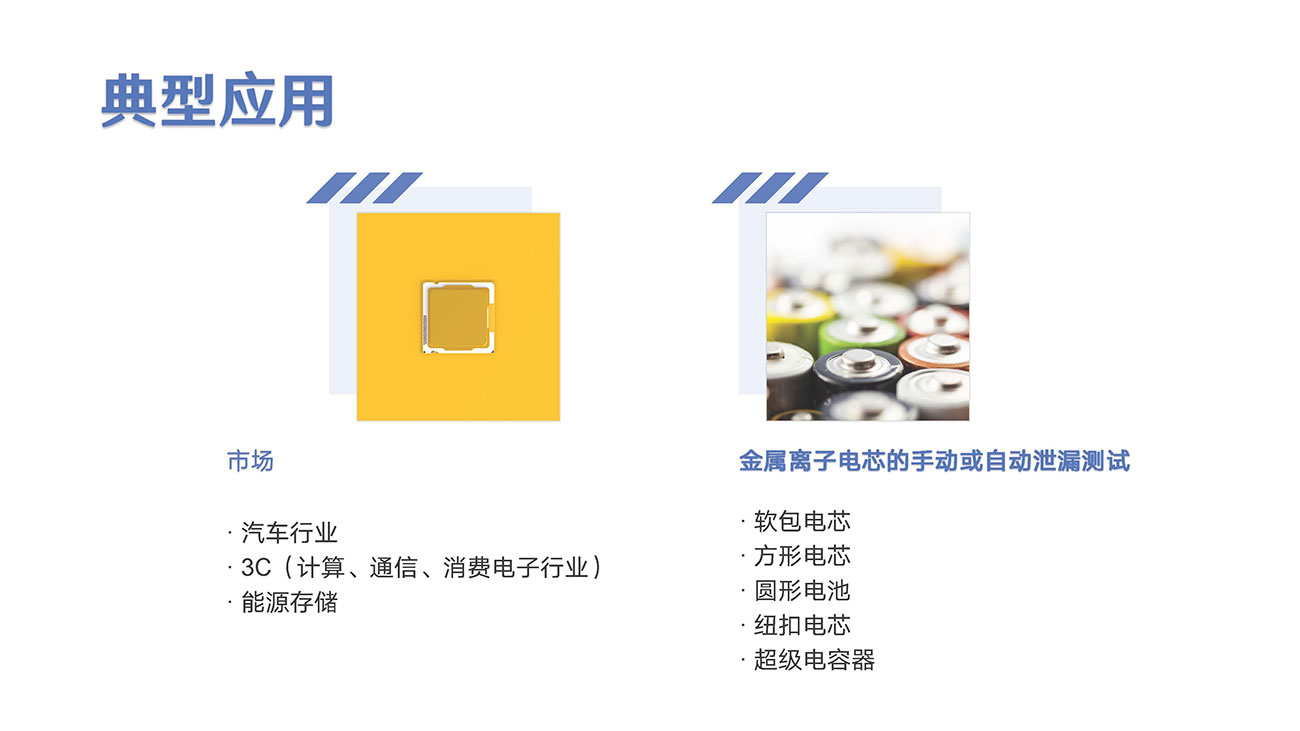 目前,电池行业的产能已在全球范围内扩大。同时,电池中的化学成分及其制造工艺也在不断改进。从电极生产到电池完全组装后的终端测试,无论您生产的电池是用于电动汽车、移动设备、电动工具、医疗设备,还是用作储能设备,如太阳能发电所需要的能量缓冲器,都离不开电解液泄露这个话题。电解液泄漏绝不可忽视, 电解液泄漏检测仪专为电芯批量生产中的在线检漏而设计。